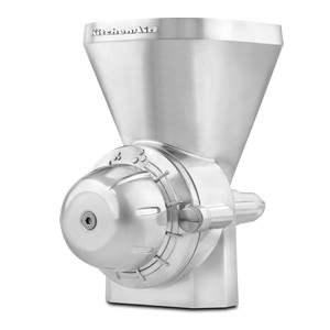 This all-metal attachment grinds wheat, oats, corn, rice, and other low-moisture, low-oil grains. Choose from 'cracked' to extra-fine consistency. Includes a cleaning brush. Designed exclusively for use with all KitchenAid household stand mixers. Model: KGMA.